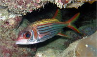 砂地のスロープを下りていくと珊瑚の根が点在していて根の周りではスカシテンジクダイが見物