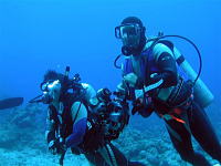 ふくちゃん&マッチーは、早速オーナーの小泉さんとスタッフに水中を案内してもらった